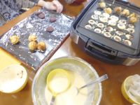 最近、少し元気のない様子のM様。何か気分を換えられる事が無いかと考え、久しぶりにおやつレクをしてみる事に。ホットプレートとタコ焼き器で皆様の協力のもと、どら焼きと鈴カステラを作りました。中身はあんこ、チーズ、チョコの三種。それぞれ美味しく出来上がりましたが、中でも一番好評だったのがチョコ👍。皆様「美味しい!」と食べておいででした。M様からも笑顔がこぼれ、心なしか元気になられた様子でした😄