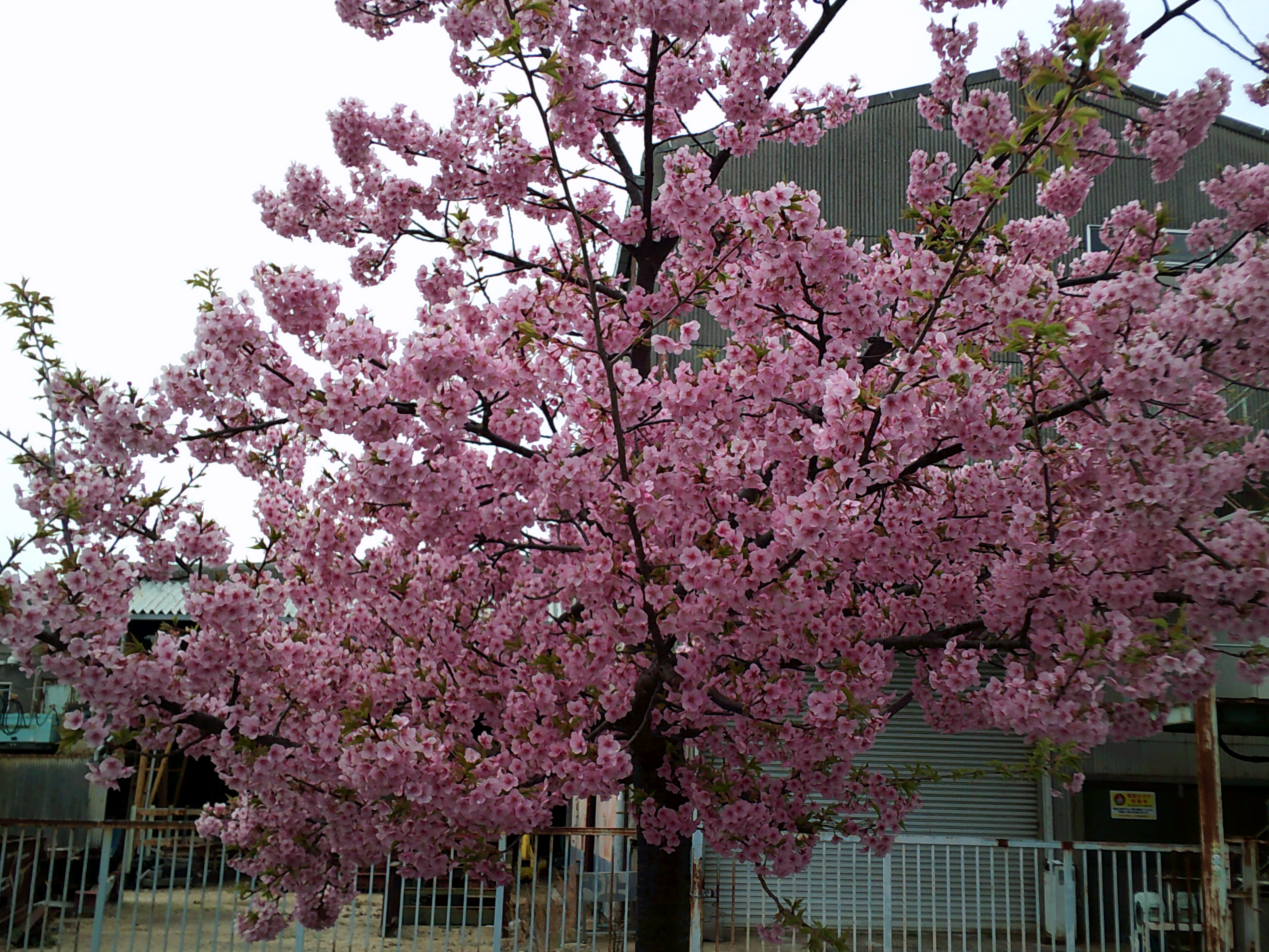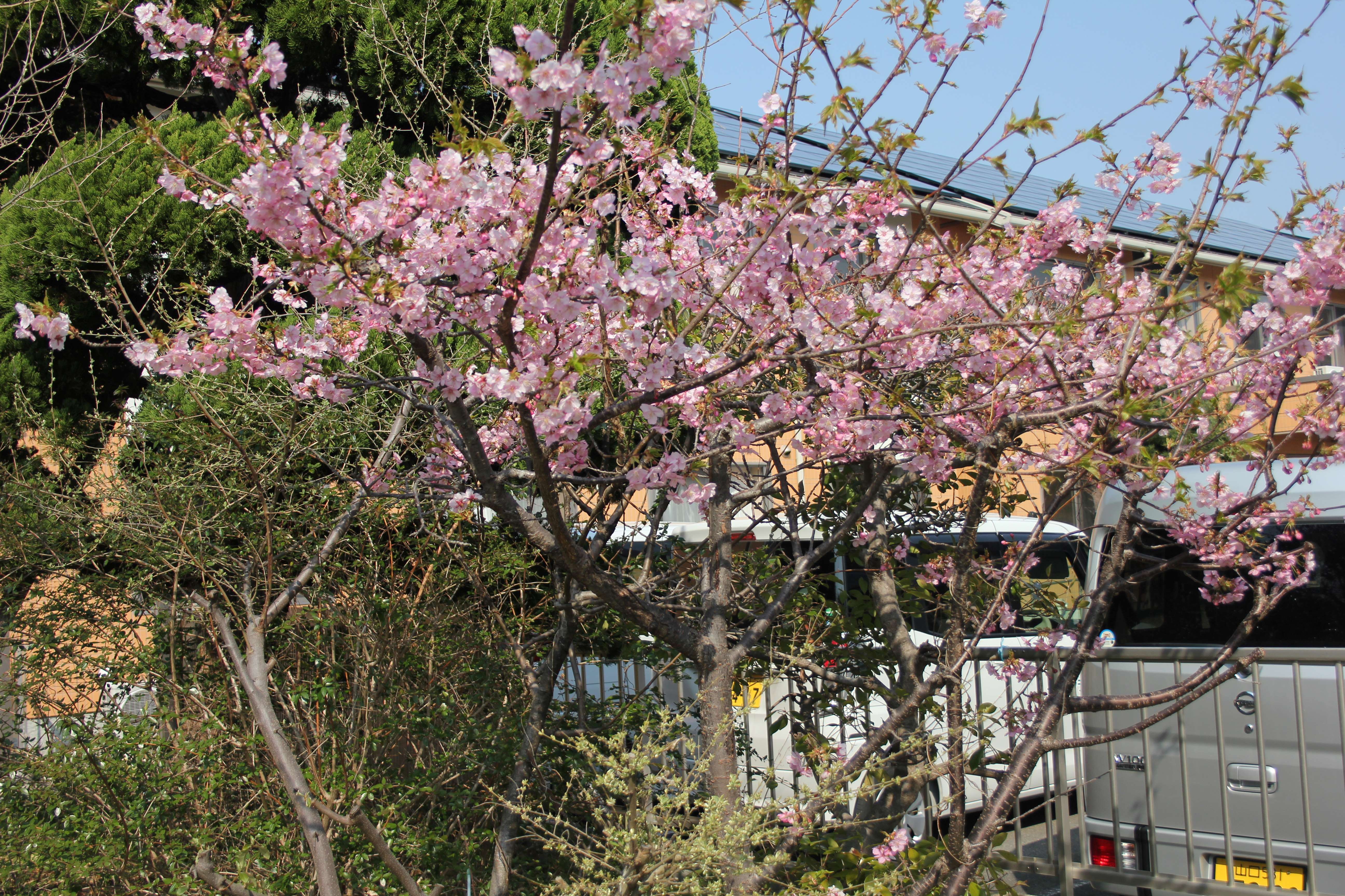 施設近くの新築地緑地公園に咲いている河津桜です😁