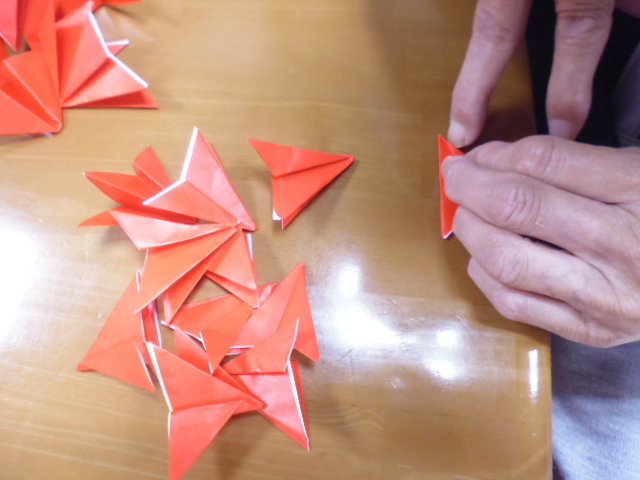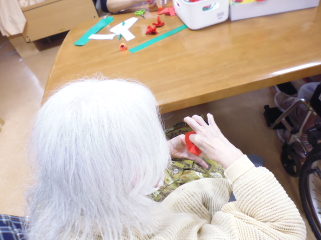 手に麻痺がある方ですが、上手に花の部分を折ってくださいます。