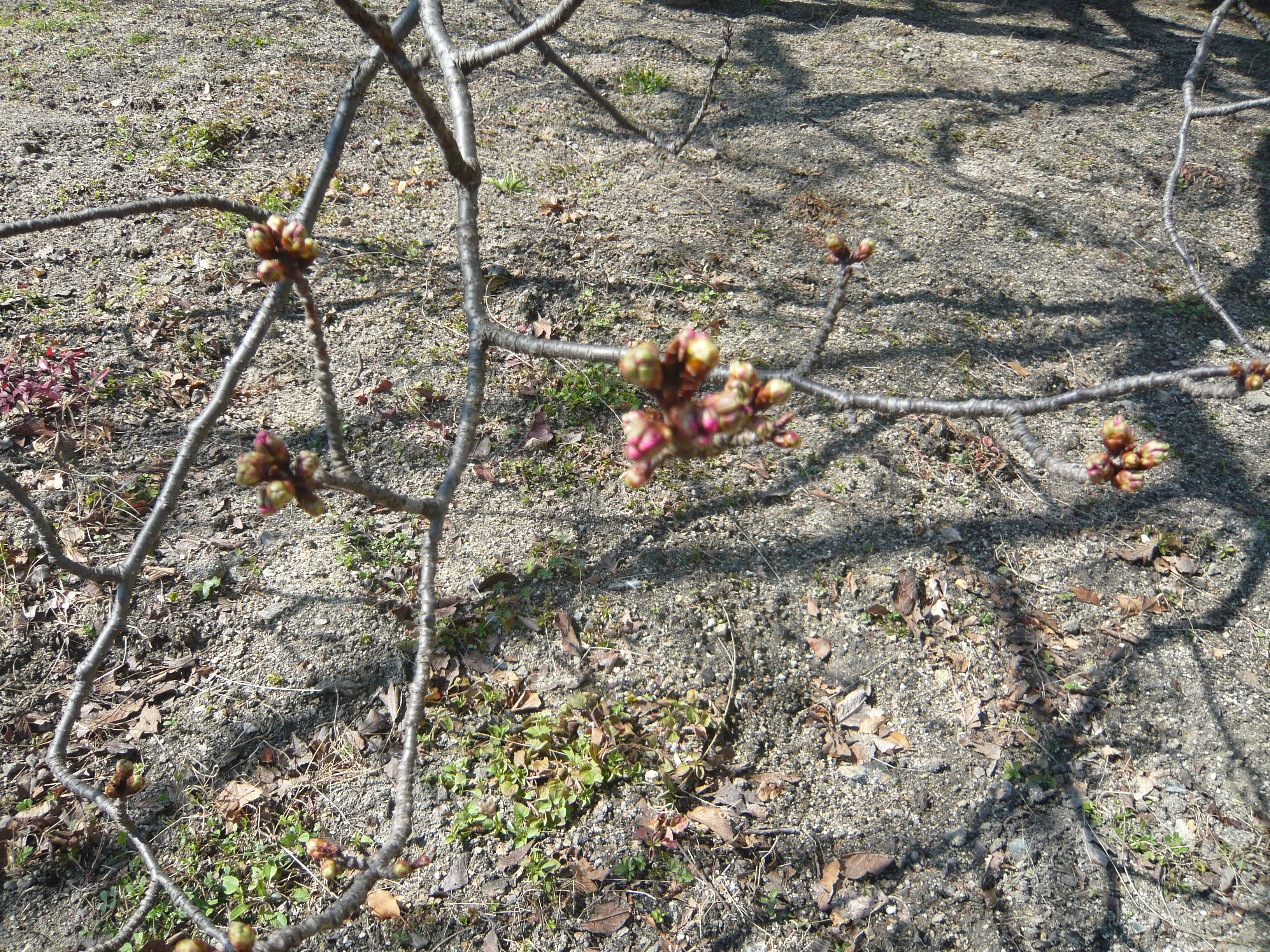 県指定天然記念物の寒桜(蓬莱桜)。本来ならこの時期には咲いている桜なのですが・・・今年は気候のせいかまだ蕾でした。満開になるのを楽しみにして、後日また報告します。