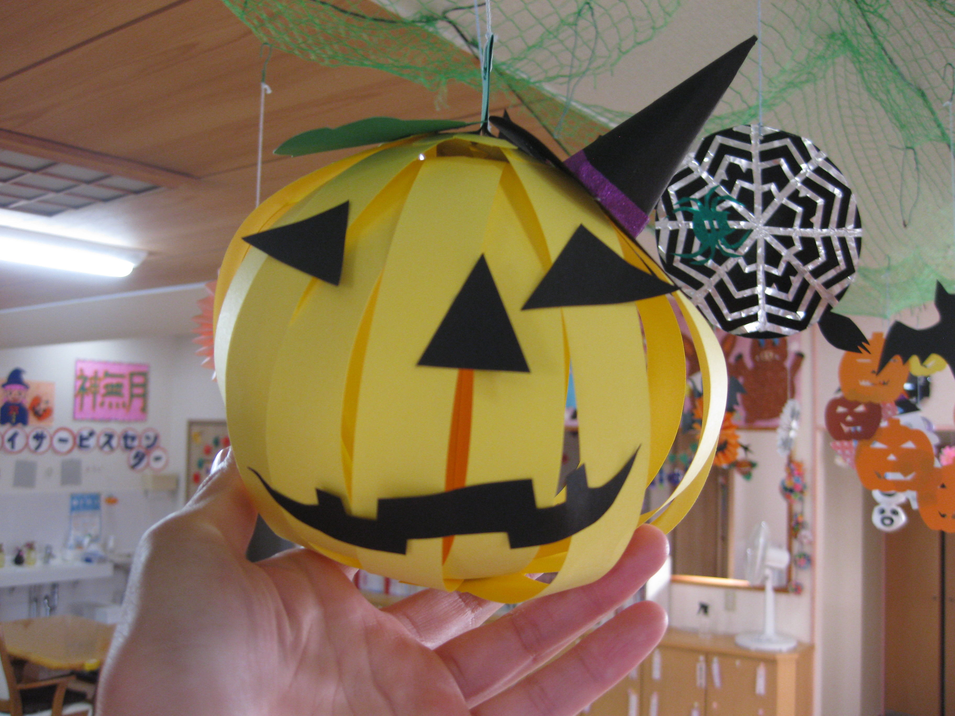 ハロウィンの貼り絵が完成しました。これでハロウィンの準備完了😊
