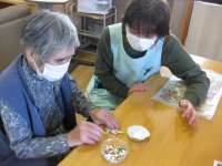 12月のあるイベントに向けて貼り絵チーム、ツリー作りチームに分かれて頑張っています。「寒くなって手を動かしにくいけど、リハビリよ」や「役割があってうれしい」と声があります。😊
