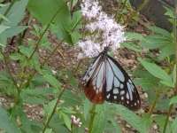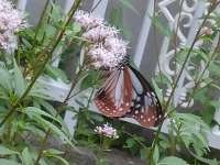 この蝶は『アサギマダラ』と言う蝶で、2000㎞以上移動する”旅する蝶”と呼ばれています。この蝶は、フジバカマと言う花を好んでやって来ます。