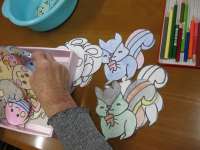 11月のカレンダー作成中です。色塗り担当のご利用者様、細かく線を引くご利用者様。