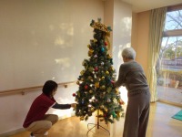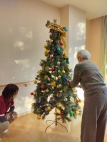 時間を見つけて、入居者様とご一緒にクリスマスツリーの飾り付けをおこないました(≧▽≦)
