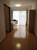片方の部屋にベッドを2台置いて、もう片方を居間として