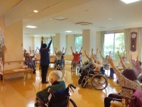 約20名程の入居者様が参加され、先生とご一緒にリズムに合わせて体を動かしました(≧▽≦)