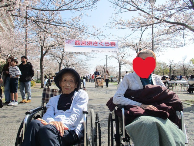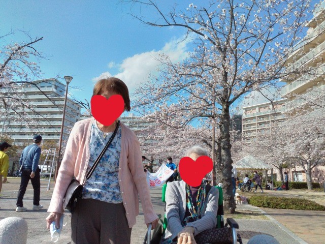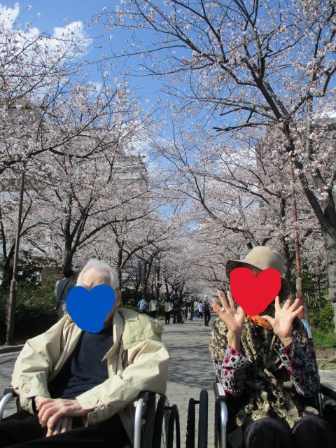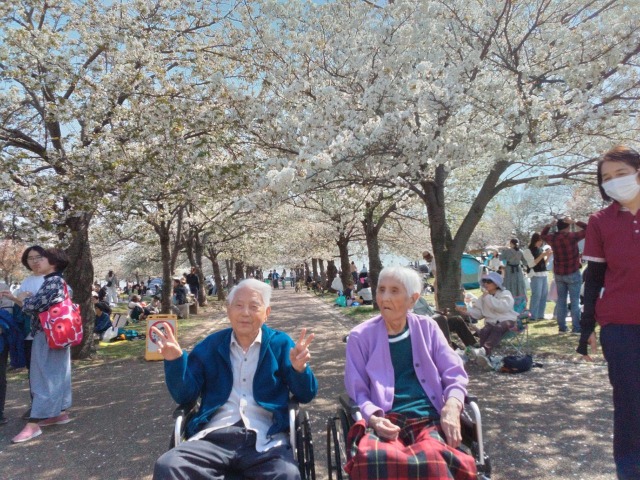 入居者様と一緒に桜を見て記念撮影📸皆様から「桜はいつ見ても綺麗ね」と喜んでいただけたご様子でした(≧▽≦)