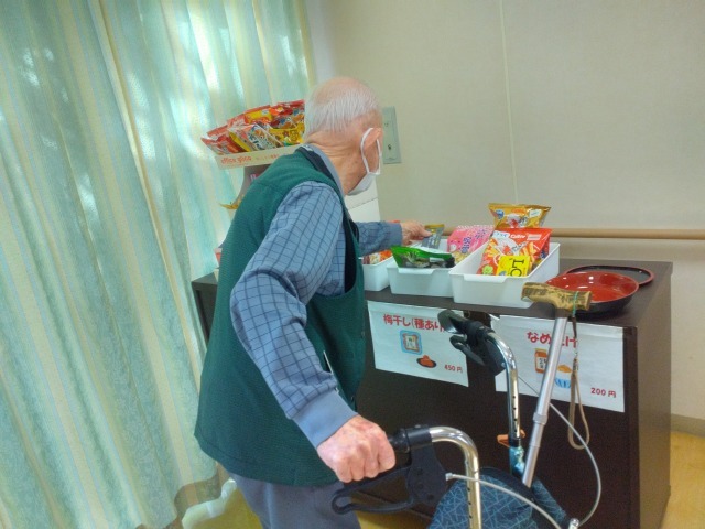 本日1階事務所前にある売店コーナーにお買い物に来られた入居者様をパシャリ📸