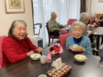 こんにちは、シーハーツ柏です。本日は、雨の日曜日でしたが、たくさんのご家族様の来館がありました。 重ねて、11月のお誕生日会も開催し、入居者の皆様でお祝いをさせていただきました。女性でしたので、おおやけには年齢はお伝えしていませんが、米寿になります。うれし涙で「皆さんにこうやってお祝いしていただいて、感激です。これからもまだまだ元気に生きていきます!」と、コメントがありました。若々しく頼もしいです! フルーツのデザートも好評で、皆さんでおいしくいただき、素敵な日曜日になりました🎂