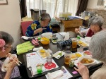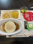 お祭りといえば、焼きぞばだったり、おいしい食べ物も魅力的ですね!ランチも紹介します♪ 厨房さんお手製のタコライス風焼きそばと、きれいなゼリーが印象的でした。テーブル席での団欒の様子も楽しそうですね。(*^^*)