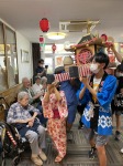 こんにちは、シーハーツ柏です! 前回に引き続き、夏祭りの様子を紹介します🍉 口を大きく開けて、何を召し上がっているのでしょうか? 祭りといえば、そうです、「綿菓子」! みなさん、綿菓子を手に取ると、自然と口を大きく開けて、「がぶり!」なかには、「まぁ!これはどうやっていただくのかしら?」と、おっしゃる入居者様もいらっしゃいましたが、ほどんどの入居者様が豪快にいただいていました。口いっぱいに広がる甘い綿菓子に、「おいしいねぇ。久ぶりだぁ♡」とうっとりされていました。そんな綿菓子を作るのもコツが必要で、大変なんです💦 くるくる回して、手首が、、、!