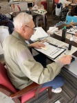 午後の活動は、書道です。セッティングのお手伝いをすると、皆さん、さくさくとお手本を選び、慣れた様子で筆をとっていらっしゃいました。「ゆっくり時間のあるときでないと、書けないからね!」と、書を楽しむ仲間と向かい合わせに、黙々と筆が進みました。とってもお上手で、憧れますね✨