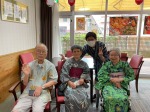 「ん?どなただっけ?」と、一言ふたこと会話していると、思い出した様子で、「うわぁ! 久しぶりね。びっくりしたよ(^^!」とTさん。素敵な訪問者は、Tさんが以前に入所先されていた、「シーハーツ柏の葉」磯田施設長でした! 「元気? 娘さん、忙しいでしょう?」と、会話が弾みます。パワフルな磯田施設長に、「変わらずいいねぇ。元気にやってる?」と、Tさん。突然の再会となりましたが、笑顔の1枚が撮れました。