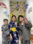 ご希望の入居者様には朝からスタッフが着付けをさせていただいています☆彡 皆さん、とってもお似合いです。 仲良くお揃いの浴衣ショットが撮れました。「きれいね。似合うわよ。」と、入居者様同士の褒めちぎり連発!(笑) 「今日は、美人がたくさんいるね~!」と男性の入所者様も一日の始まりからご機嫌でした。 夏祭りのイベント詳細の様子が次回ブログで紹介いたします🎵 お楽しみに!