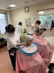 こんにちは、シーハーツ柏です。今日は、美容師さん3名が訪問理美容にいらしていました。予約者が多い中、急な変更や追加にも親切に対応していただき、ありがとうございました♡ 何より、入居者様も満足されていて、嬉しくなりますね。「すっきりしたわ。これで旦那さんも見て喜ぶわ(^^♪」と自室に戻られる様子や、「初めて利用するんだけど、上手に切ってもらえそう。」と、ウキウキしながらカットスペースへ向かう姿。美容師さんは、朝一番で来所され、14時頃帰られました。