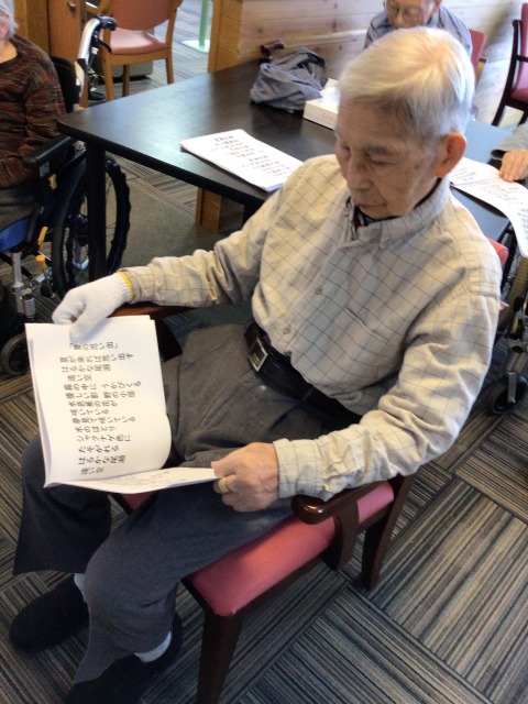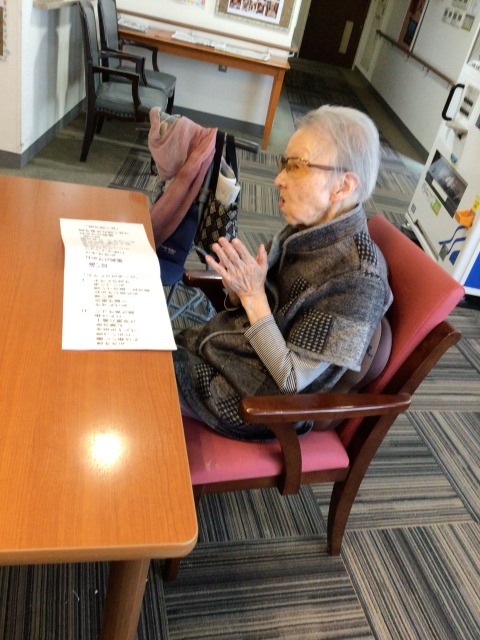 ご入居者様同士で歌詞カードをめくるサポートをしたりと