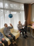 今日はリハビリスタッフと入居者様がバレーボールをしていました。