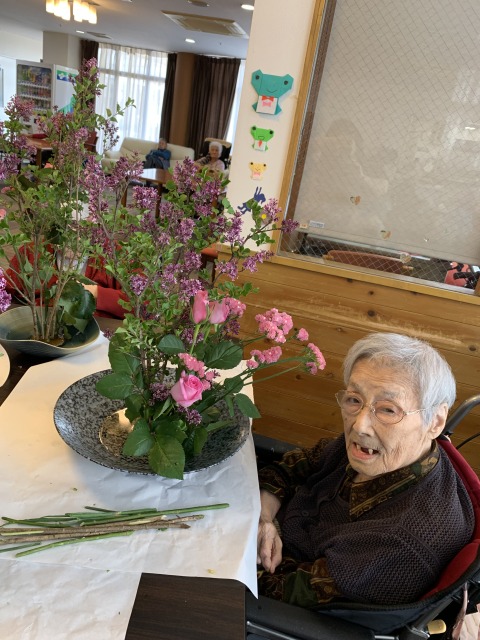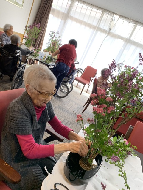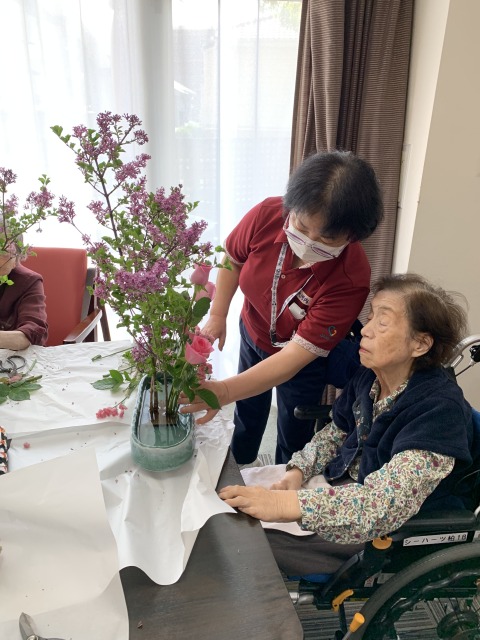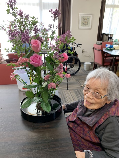 入居者様のお一人が、残念ながら生け花の時間に外出されていましたが、
