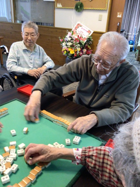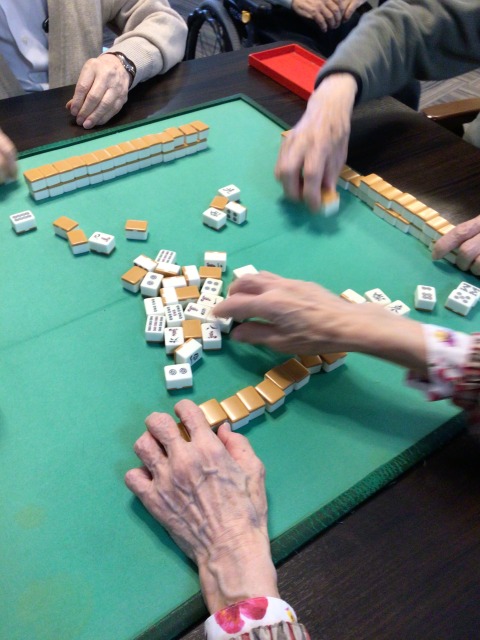 新しい入居者様で、麻雀が出来るとの話を聞いたので早速麻雀レクに誘わせて