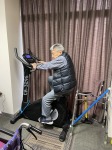 リハビリ室で、電動バイクを一生懸命こいでいる入居者様の