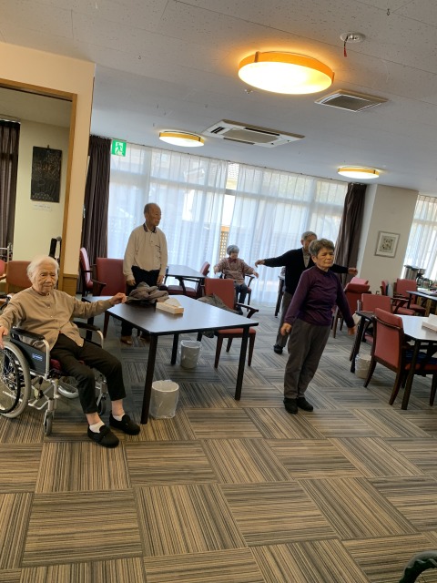 笑顔で朝の集団体操に参加されているご入居者様が(≧▽≦)