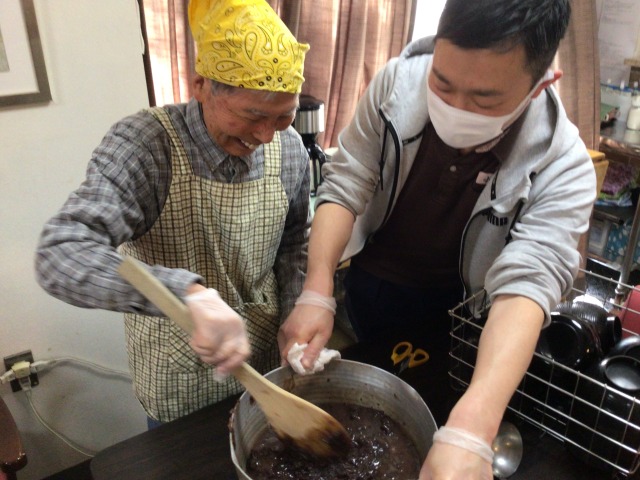 「軟らか餅」作りでは、「やっぱりこねるのは立たないとね~🎵」