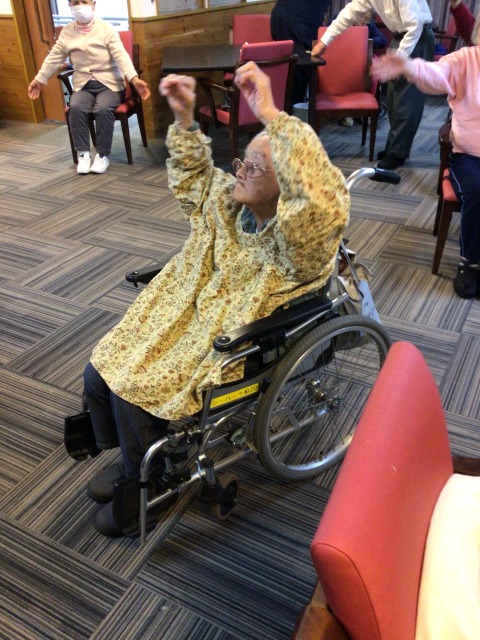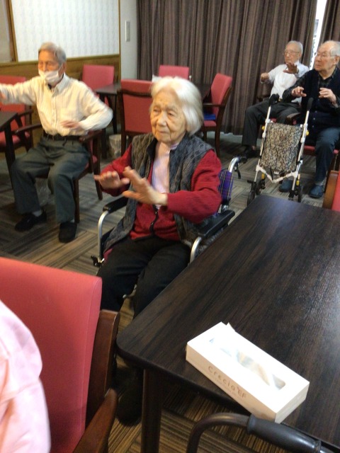 PTさんの元気なかけ声にご入居者様も夢中になり