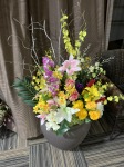 玄関と、各フロアのラウンジに、フラワーアレンジメントを設置しました。