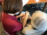入居者様が、スタッフに爪を切ってもらっていました。