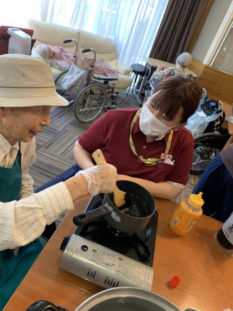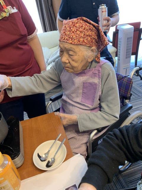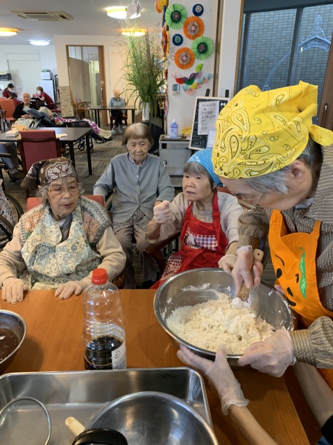 「粉を混ぜるの力がいるね~」「筋肉痛になるわぁ~」・・・