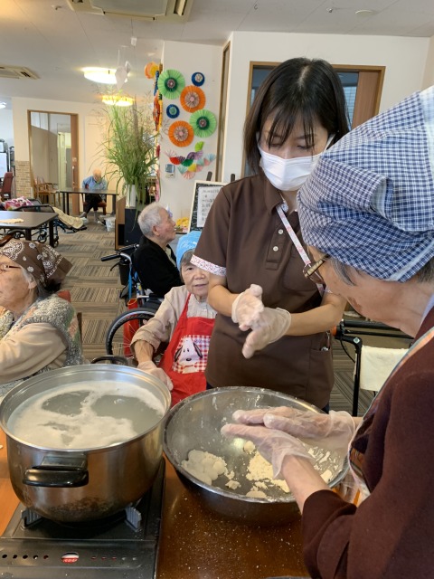 お団子を作り、皆さまに盛り付けをお願いしていると、
