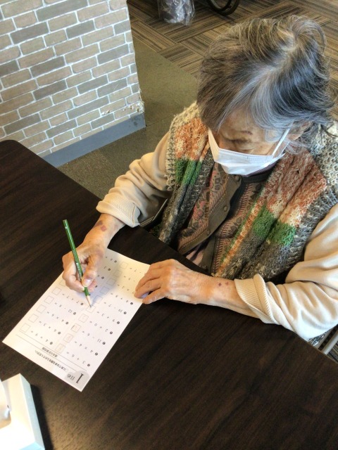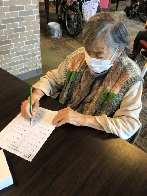今日は朝から「脳トレ・計算ドリル」をケアさんと