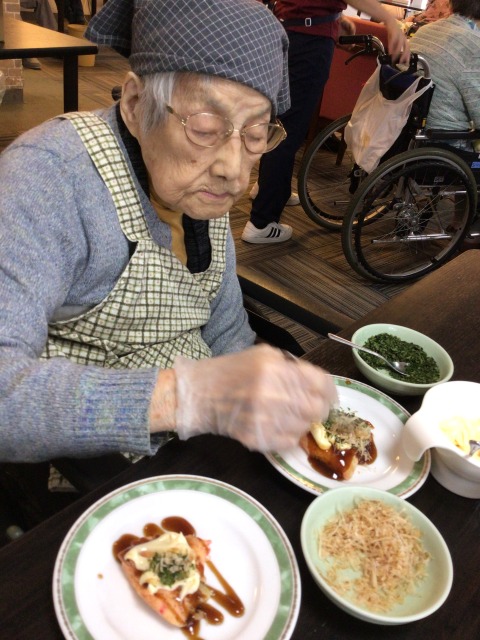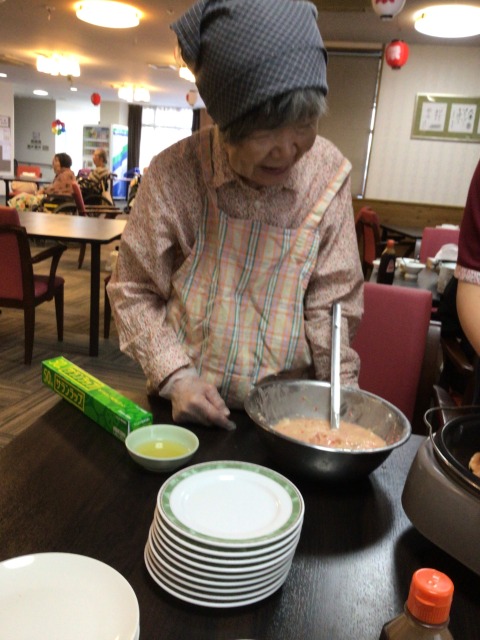 お好み焼きを一所懸命作ってくださっていたご入居者様・・・
