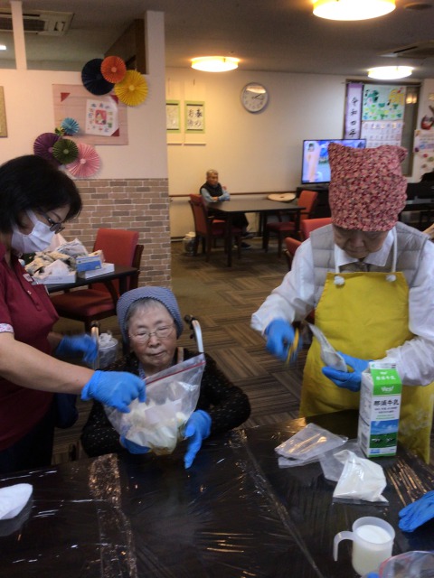 施設長に味見をしてもらうと「甘味が薄い‼」