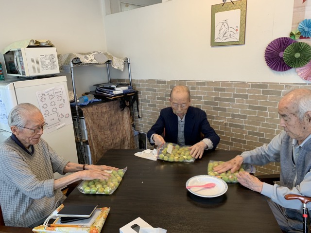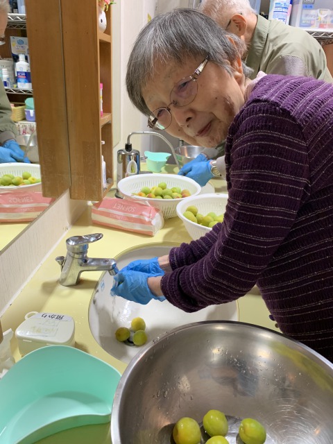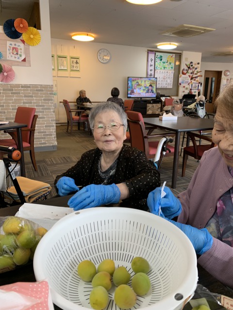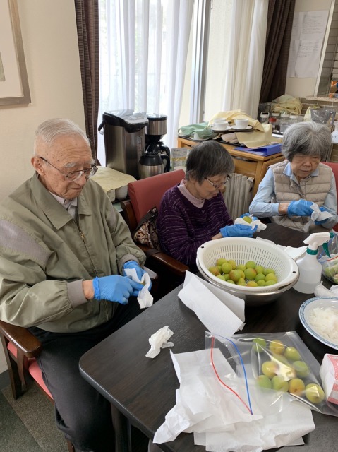 おやつの時間が近づき、「梅干しづくり」テーブルに