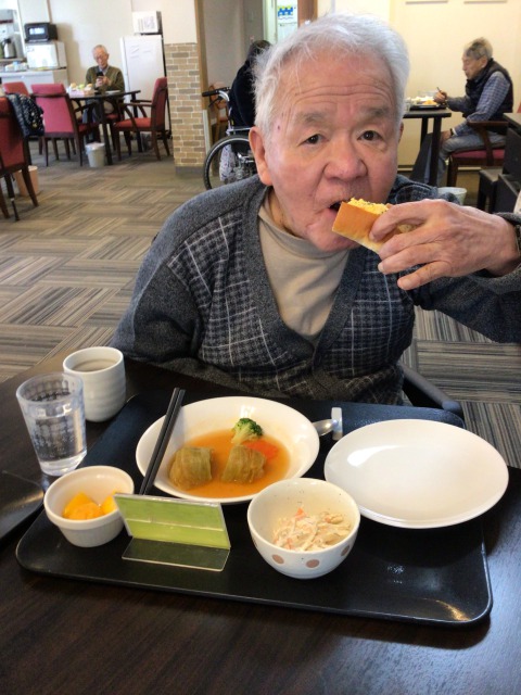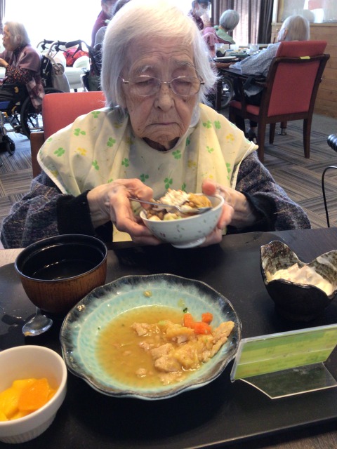 今まで体の痛みから食欲がなく食事量が減っていたあるご入居者様。
