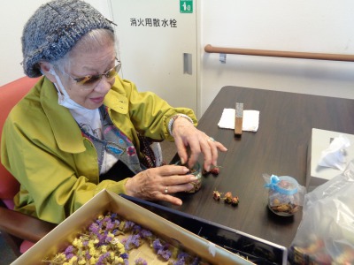 生バラや施設で採れたラベンダーでポプリを作り、小さな