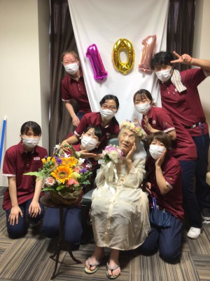 先日、ご入居者様の101歳のお祝いに、職員が心を込めて🎁