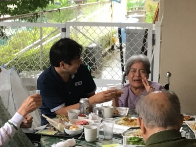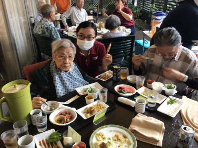 夏ですがテラスで美味しいものを食べながら交流の場を・・・