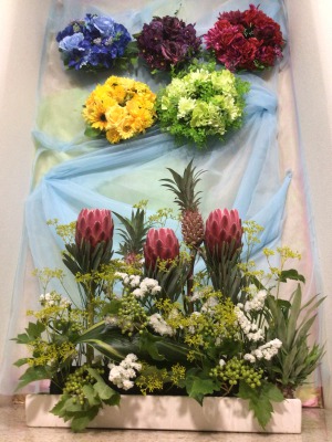 お花の名前は「プロテア」「パイナップル」「ハラン」「オミナエシ」