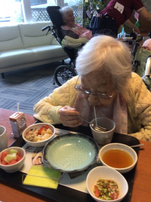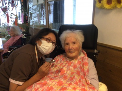 ・・・ケアさんにねぎらいの言葉をかけてくださるご入居者様。
