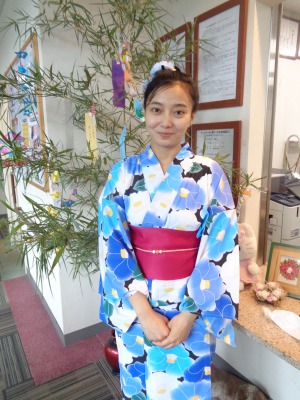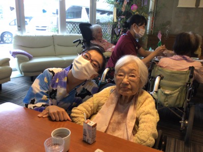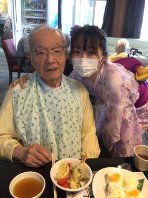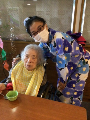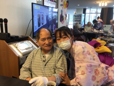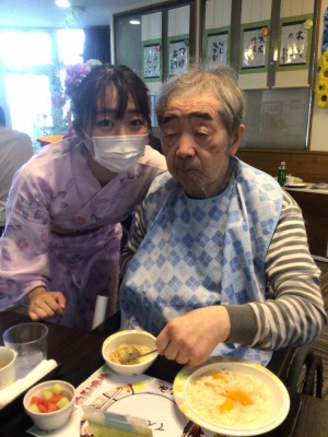 浴衣姿のケアさんたちは、配膳と注文受付隊です(^-^)