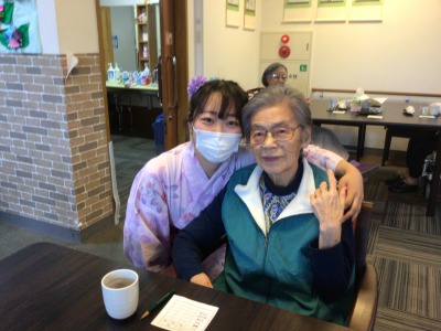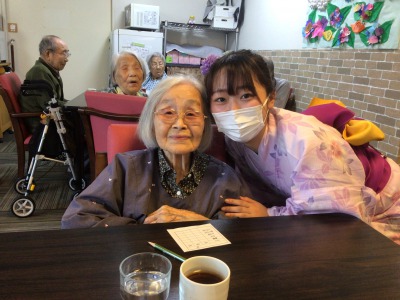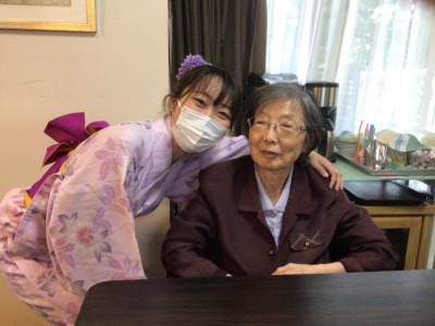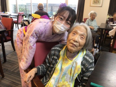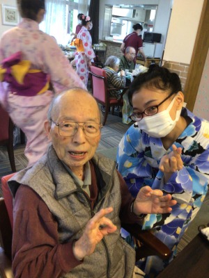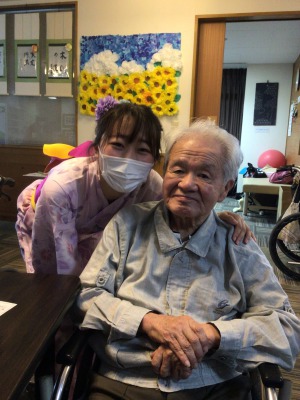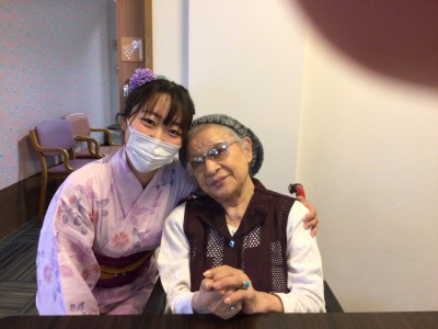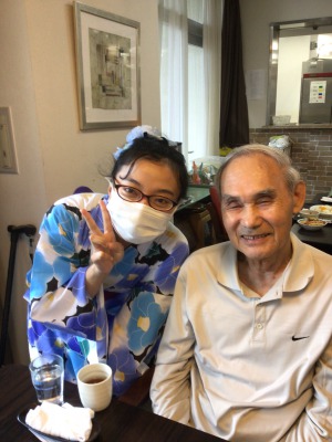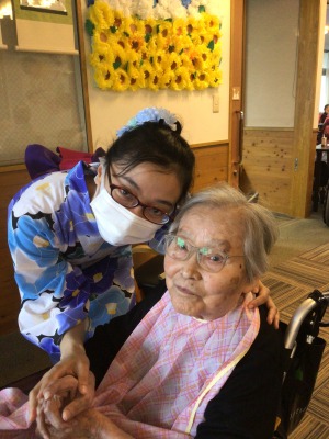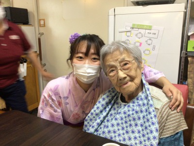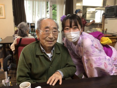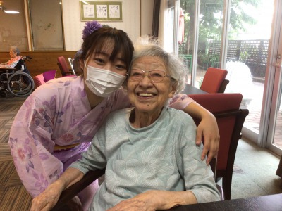 浴衣姿のケアさんと写真を撮っているとき、