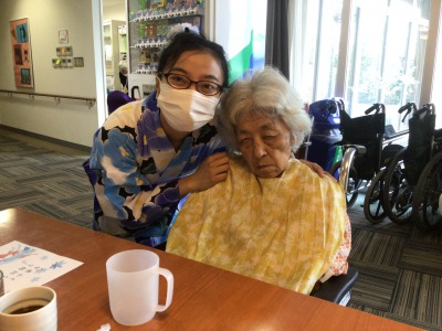 (* ̄▽ ̄)フフフッ♪・・・と外国人技能実習生とご入居者様が笑っていたので