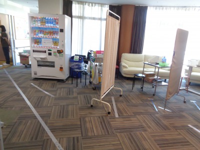 1階レストランが接種会場になり、床に診察⇒注射⇒経過観察・・・