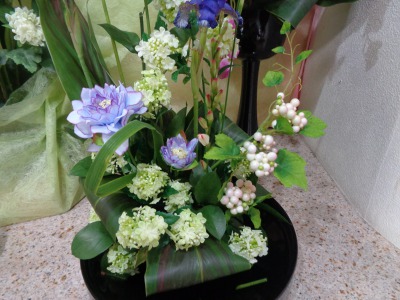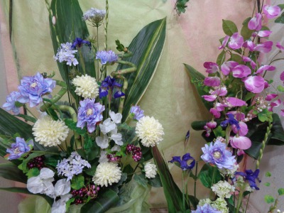 イキシア、スイトピー、しょうぶ、洋ラン、クレマチス、ビナーマム