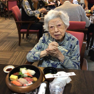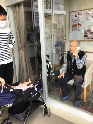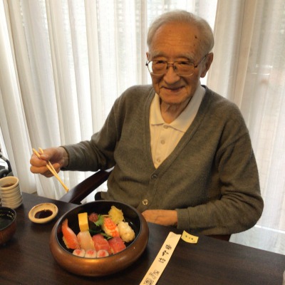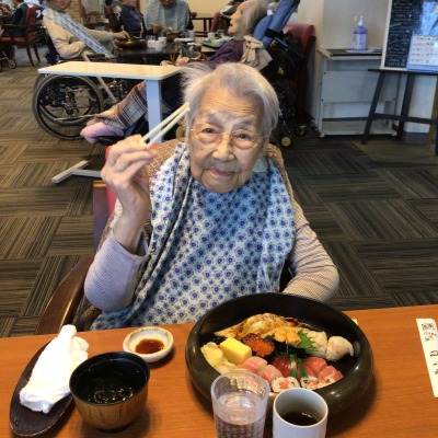 「お寿司食べて益々元気になったでしょう、これからも頑張ってね、頑張れる?」・・と施設長