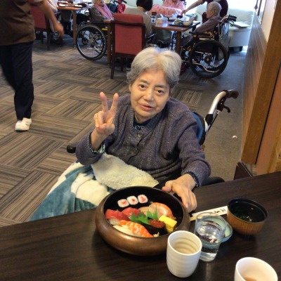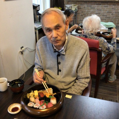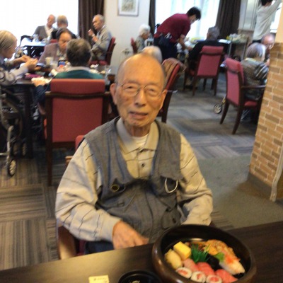 お昼休みにあるご入居者様から、「今日はお寿司をいただいて