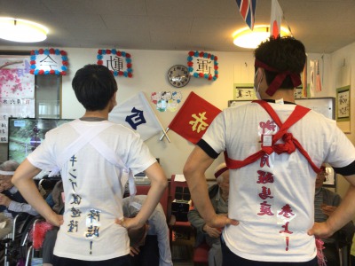 先輩ケアさんの見守る中、自分たちで考えながら入居者様に